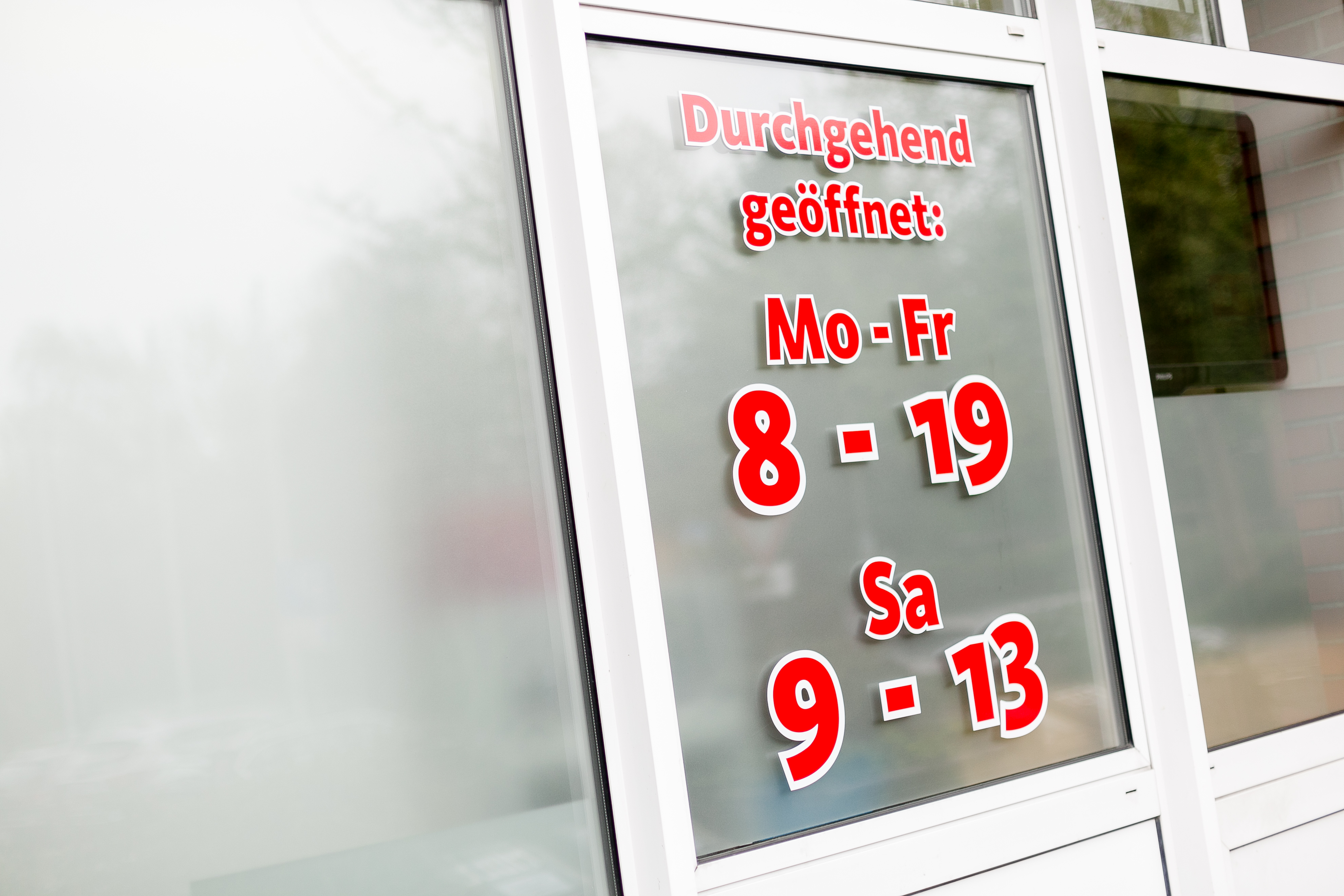 Öffnungszeiten: Mo.- Fr. 8.00 Uhr- 19.00 Uhr und Sa. 9.00 Uhr- 13.00 Uhr