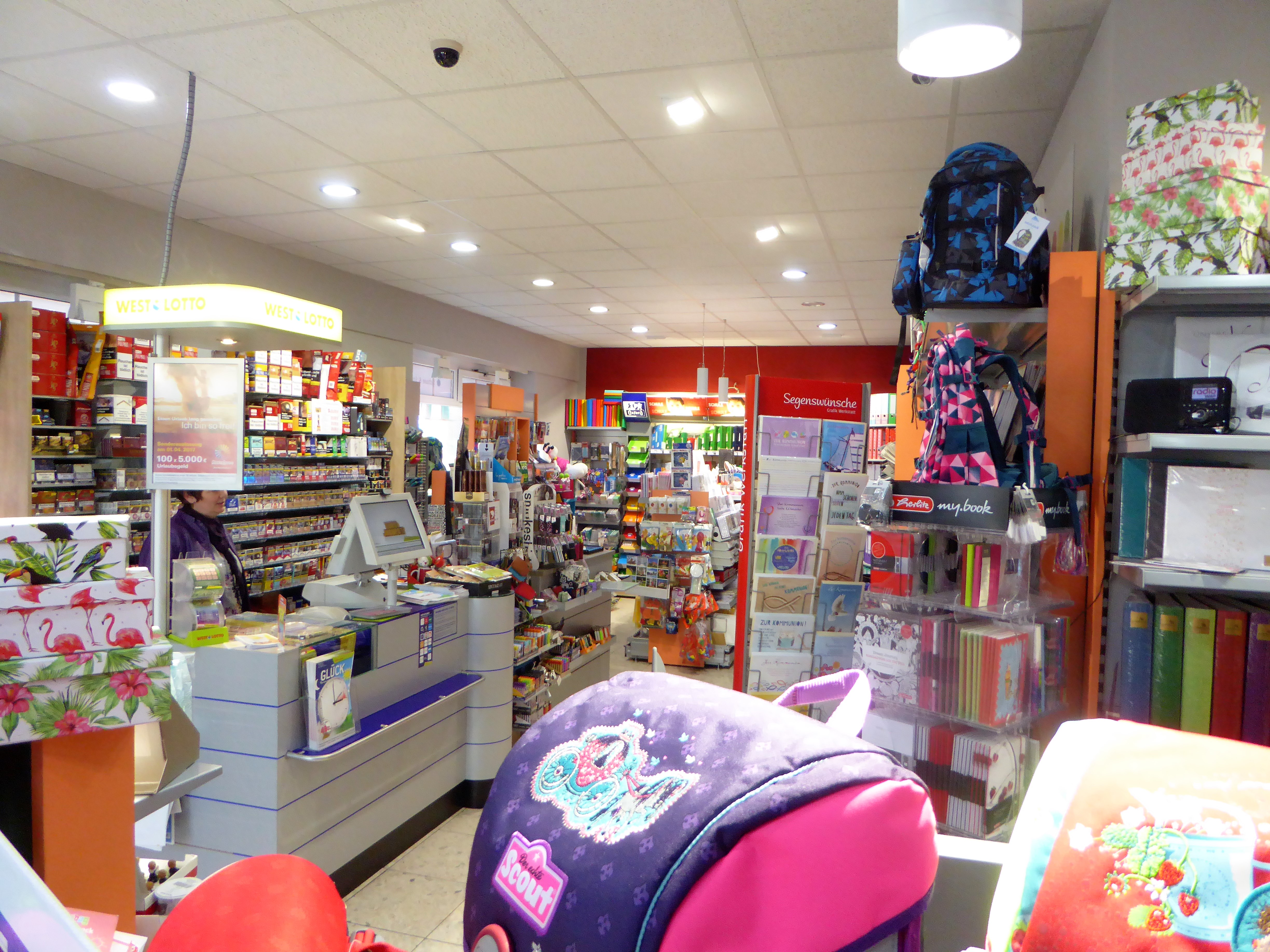 Ob wichtiges Büromaterial und ausgesuchte Schreibwaren, moderne Kugelschreiber und feine Papiere, edle Grußkarten und kleine Geschenke – im MARKT NR. 1 gibt es immer etwas zu entdecken. Damit es mit Ihrer Planung richtig klappt, führen wir schon frühzeitig im Jahr die neuesten Kalender. Nicht nur zu Kommunion und Konfirmation bieten wir moderne und klassische Devotionalien. Damit die Schule Spaß macht gibt es hier die tollsten Tornister und die pfiffigsten Utensilien, die das Lernen leichter machen. Für den richtigen Erfolg bieten wir Schulhefte in allen Lineaturen an. Ergänzt wird das Papier-, Büro- und Schulsortiment durch die Bereiche Tabakwaren und Zeitschriften und Lotto.